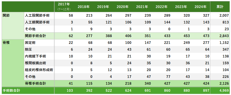 人工関節と脊椎に特化した