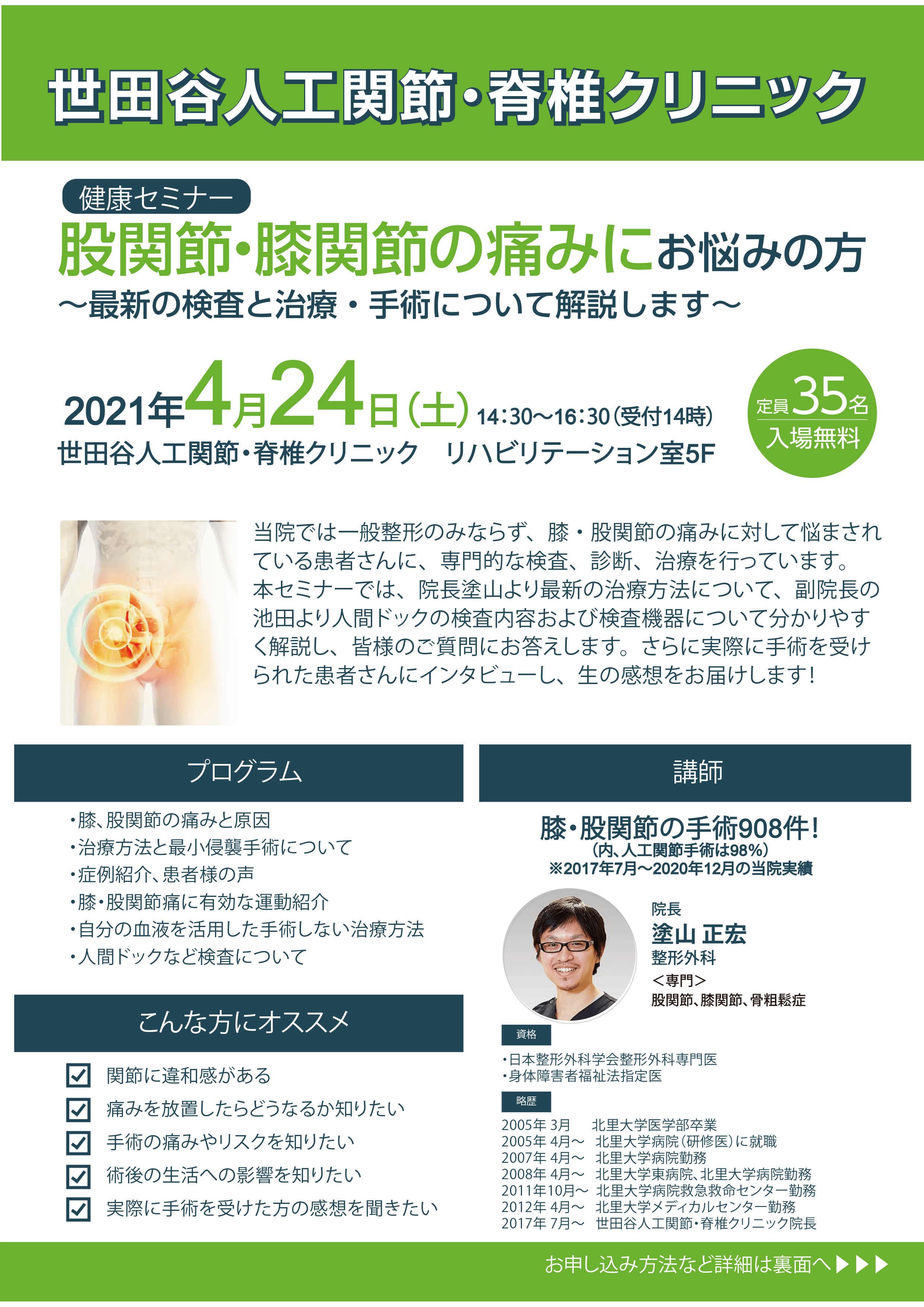 世田谷人工関節・脊椎クリニックの院長の塗山正宏でした。