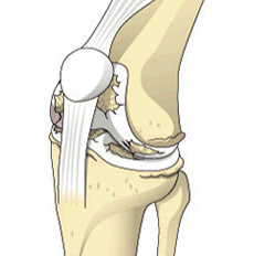 膝関節は大腿骨、脛骨、膝蓋骨から構成されている関節です。大腿骨、脛骨、膝蓋骨の表面は弾力性のある軟骨におおわれています。軟骨があることによって、膝関節がスムーズに動くようになり、体重がかかった時の衝撃を緩和するクッションの役目をもっています。