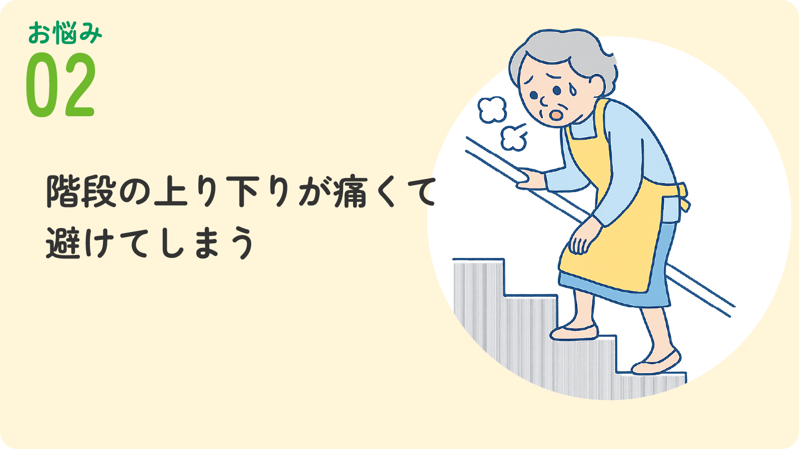 痛みのせいで頼らざるを得なかった介助や支援が、術後には不要になるケースもあります。 将来的な寝たきりや要介護のリスクを減らし、自分の力で暮らせる安心と自信を手に入れましょう