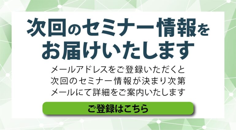 次回セミナー開催案内開催場所:近隣会場詳しくはこちら -
