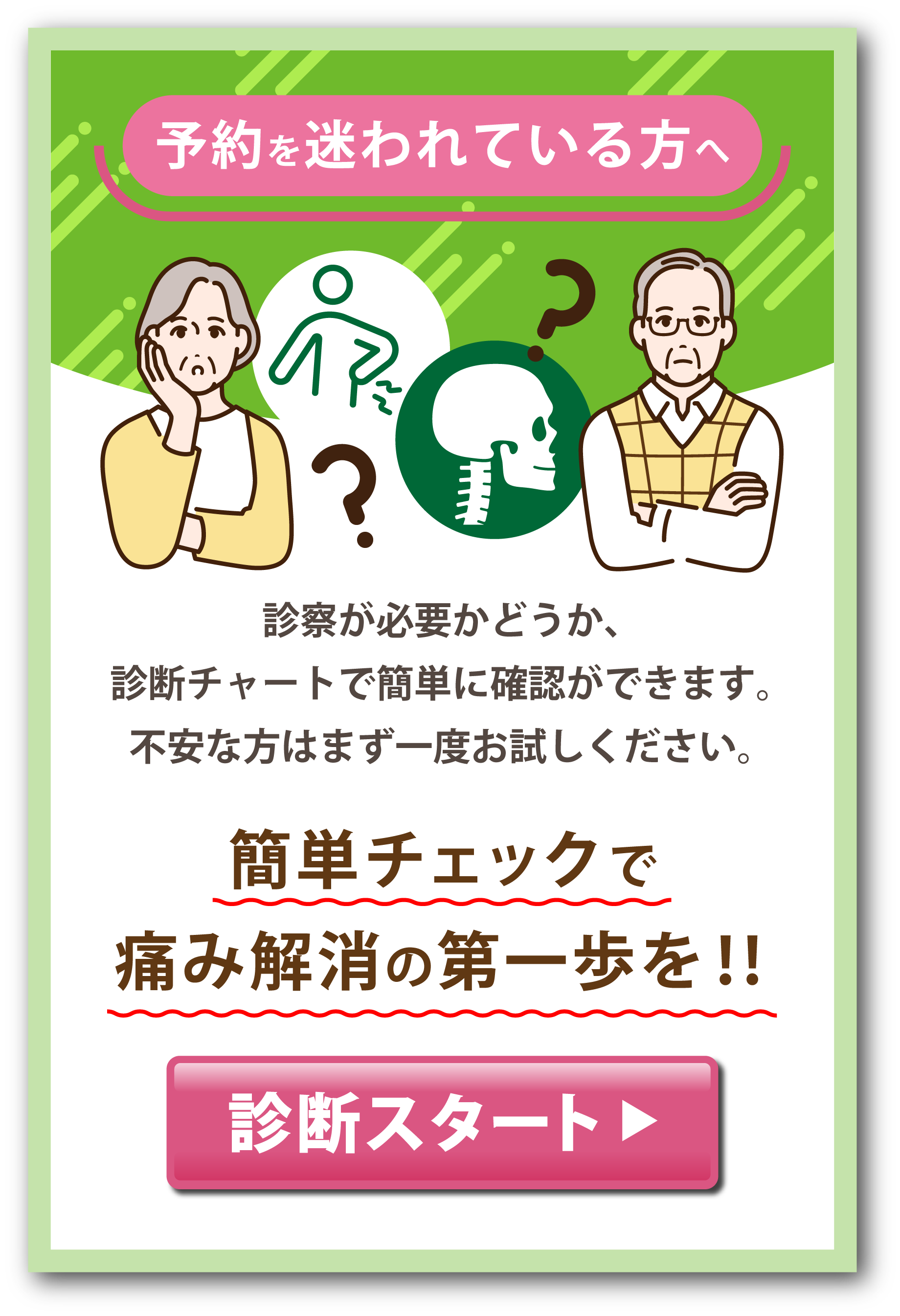 首や腰の痛み、しびれ、動かしにくさは、日常生活の質を大きく左右します。だからこそ、まずはご自身の体の状態を正しく知ることが大切です。