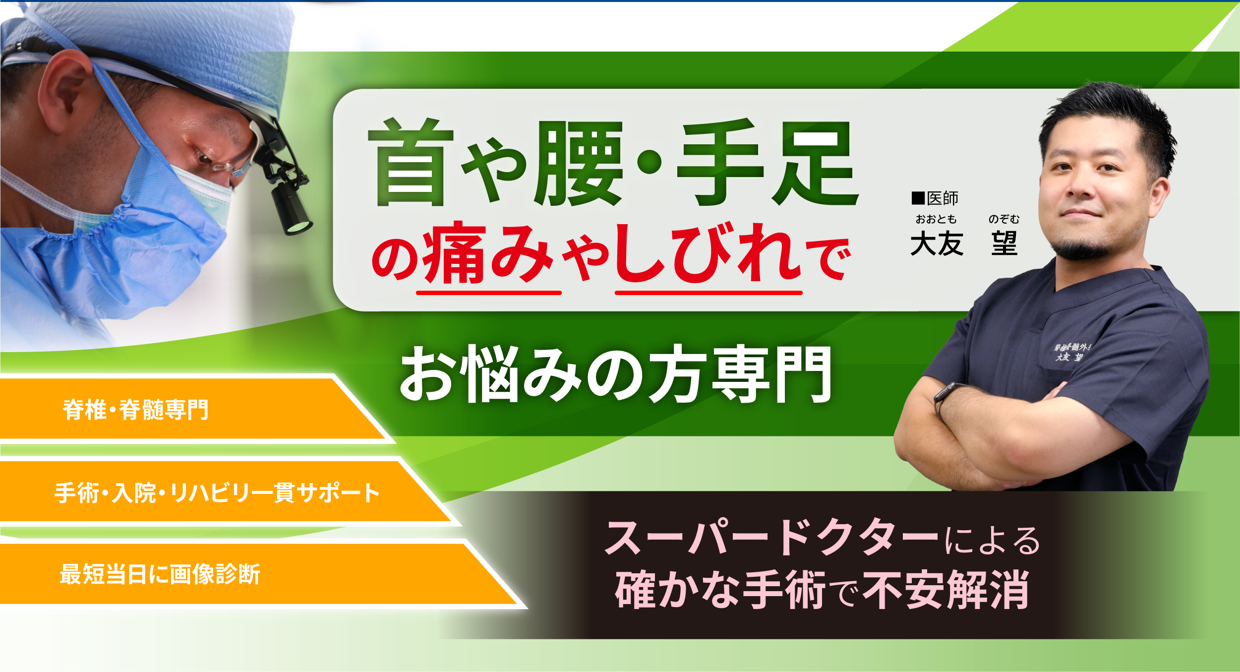 当院の医師は、豊富な専門知識と卓越した技術を兼ね備えたスーパードクターです。身体への負担が少ない手術「MISt(最小侵襲脊椎安定術)」の実施も可能です。